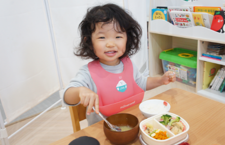 オープンしたときから娘が通っていて、当初は送迎で泣いていましたが、スタッフの方々やお友達と過ごす時間が楽しいようで最近はニコニコ笑顔で登園しています。入会前は食事を嫌がって離乳食の進みが遅れていたのですが、通い始めてから良く食べてくれるようになり、最近は食事の時間をとても楽しんでいて成長を嬉しく感じています。季節のイベントに合わせて可愛いおやつを作って楽しく食育をしてくださったり、知識が豊富な方ばかりなので離乳食の相談もできることがとても心強いです。
